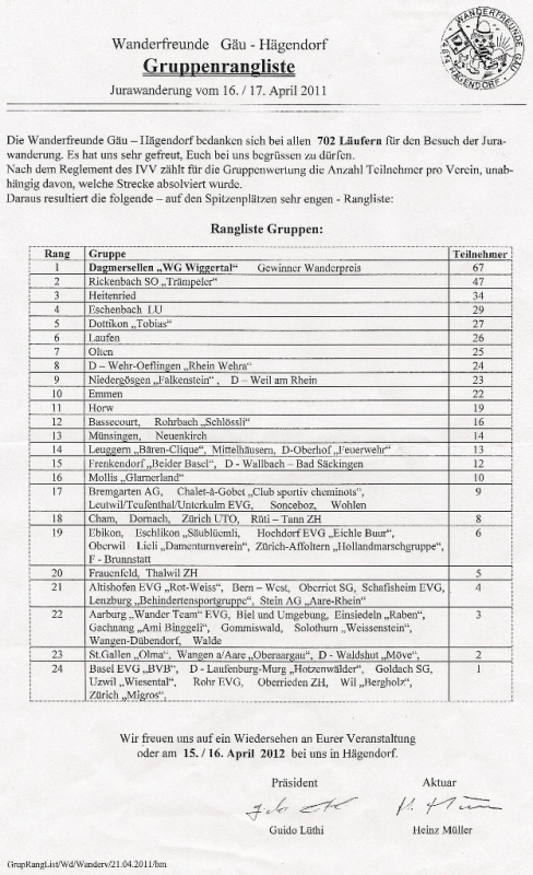 Résultats d'Hägendorf